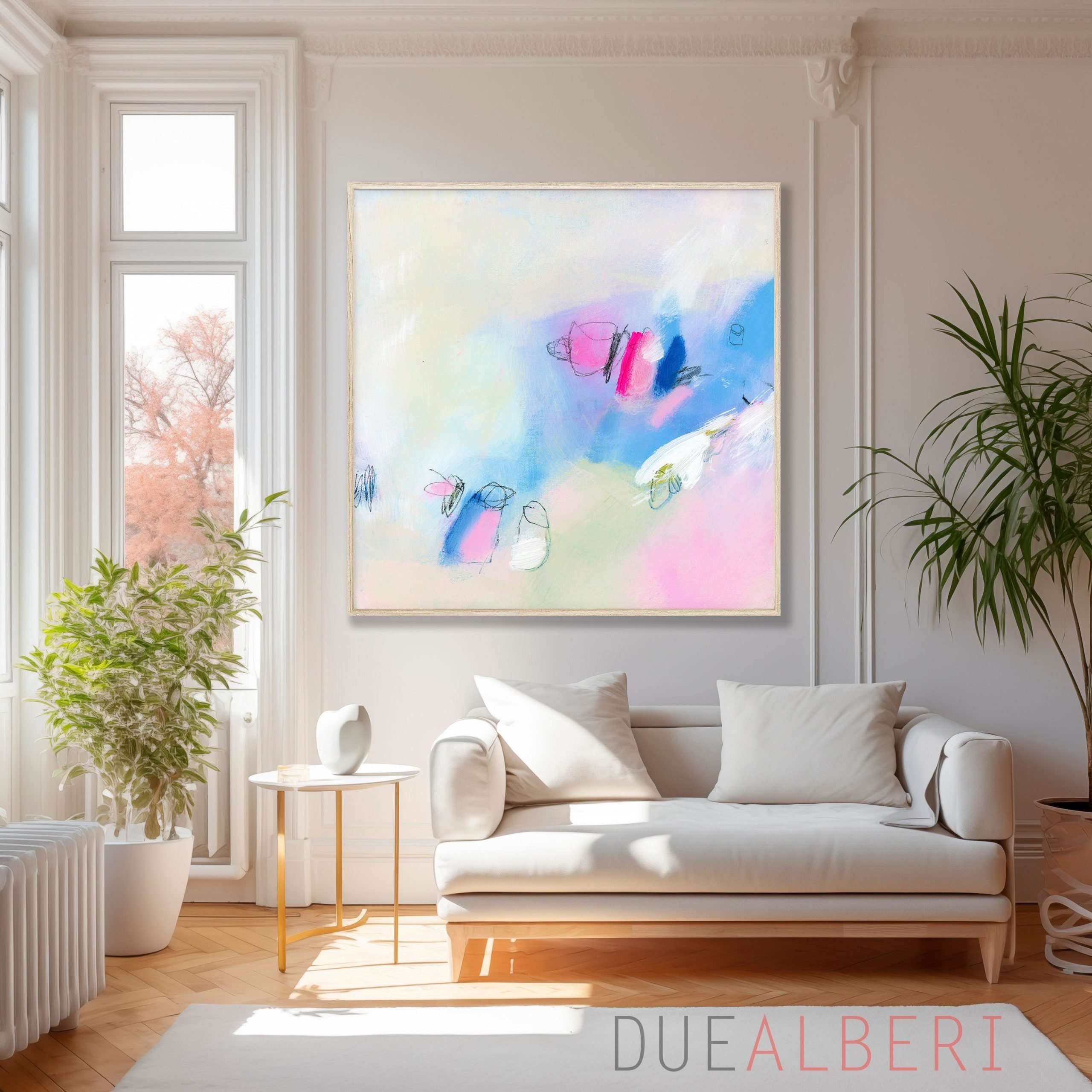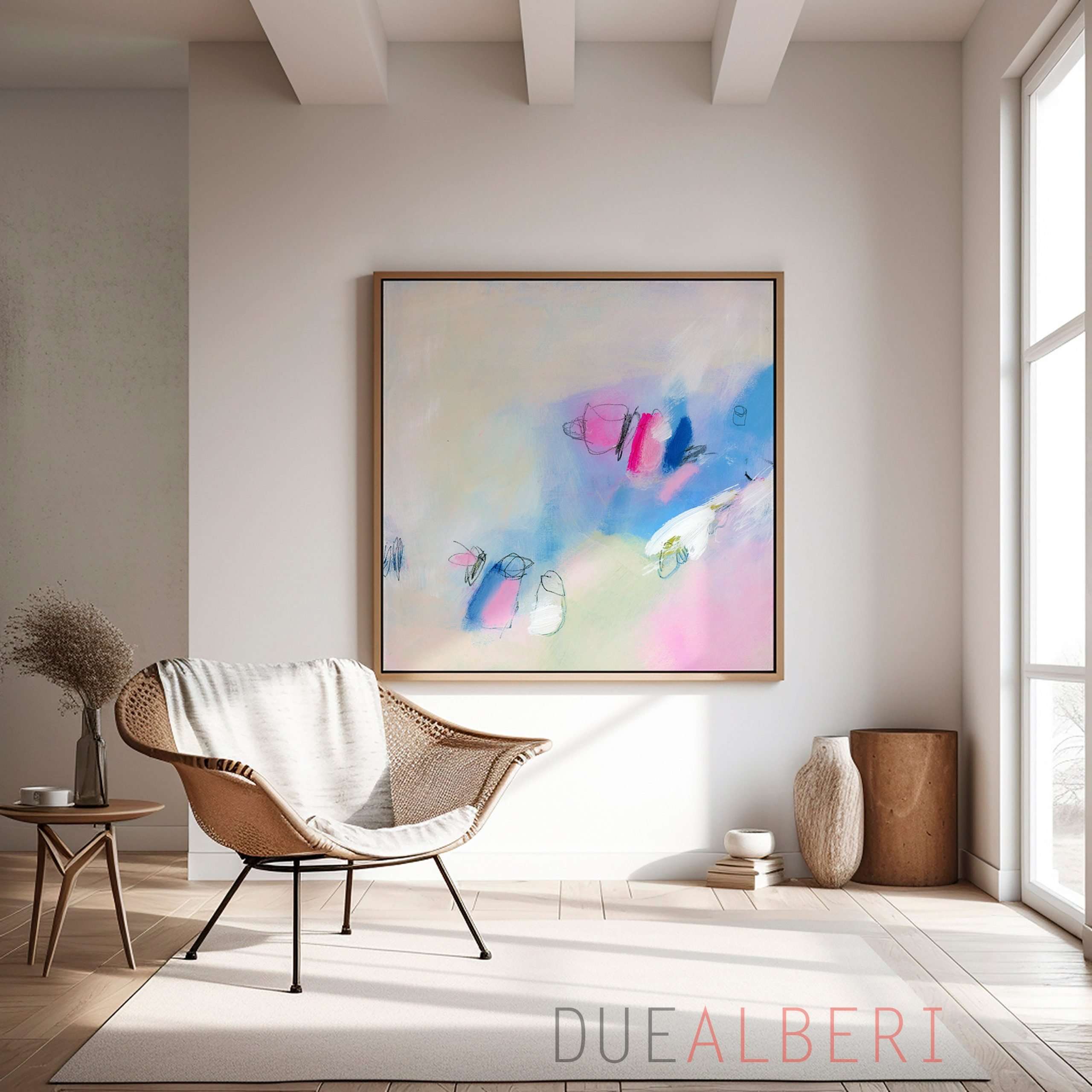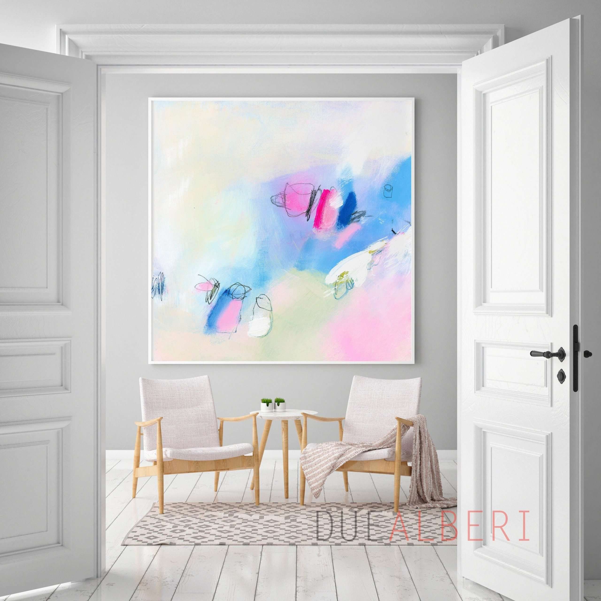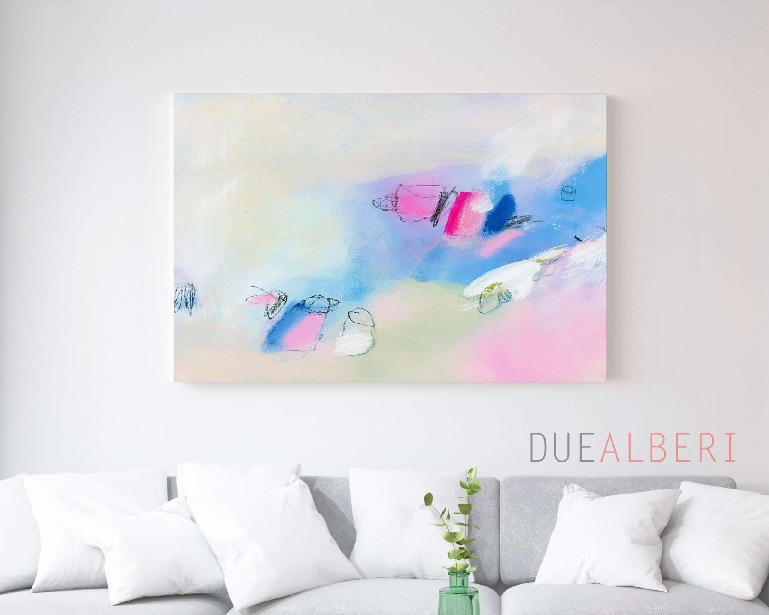 Abstract painting print light pink and blue , Extra large wall art print, Minimalist Canvas decor for living room